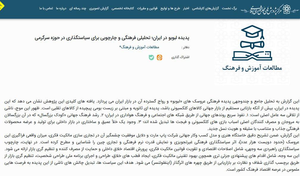 صرفنظر از وقت و هزینهای که چنین پژوهشهایی در پشت خود دارد این گزارش ۳۰ صفحهای که به بررسی «جذابیت تجاری، موفقیت جهانی و الگوی مصرف فرهنگی» یک عروسک چینی پرداخته، در روزهایی منتشر شده که نه تنها بیماران که برخی نمایندگان عضو کمیسیون بهداشت و درمان از چشماندازی نه چندان روشن در ماههای آینده در تامین برخی داروهای حیاتی اظهار نگرانی میکنند